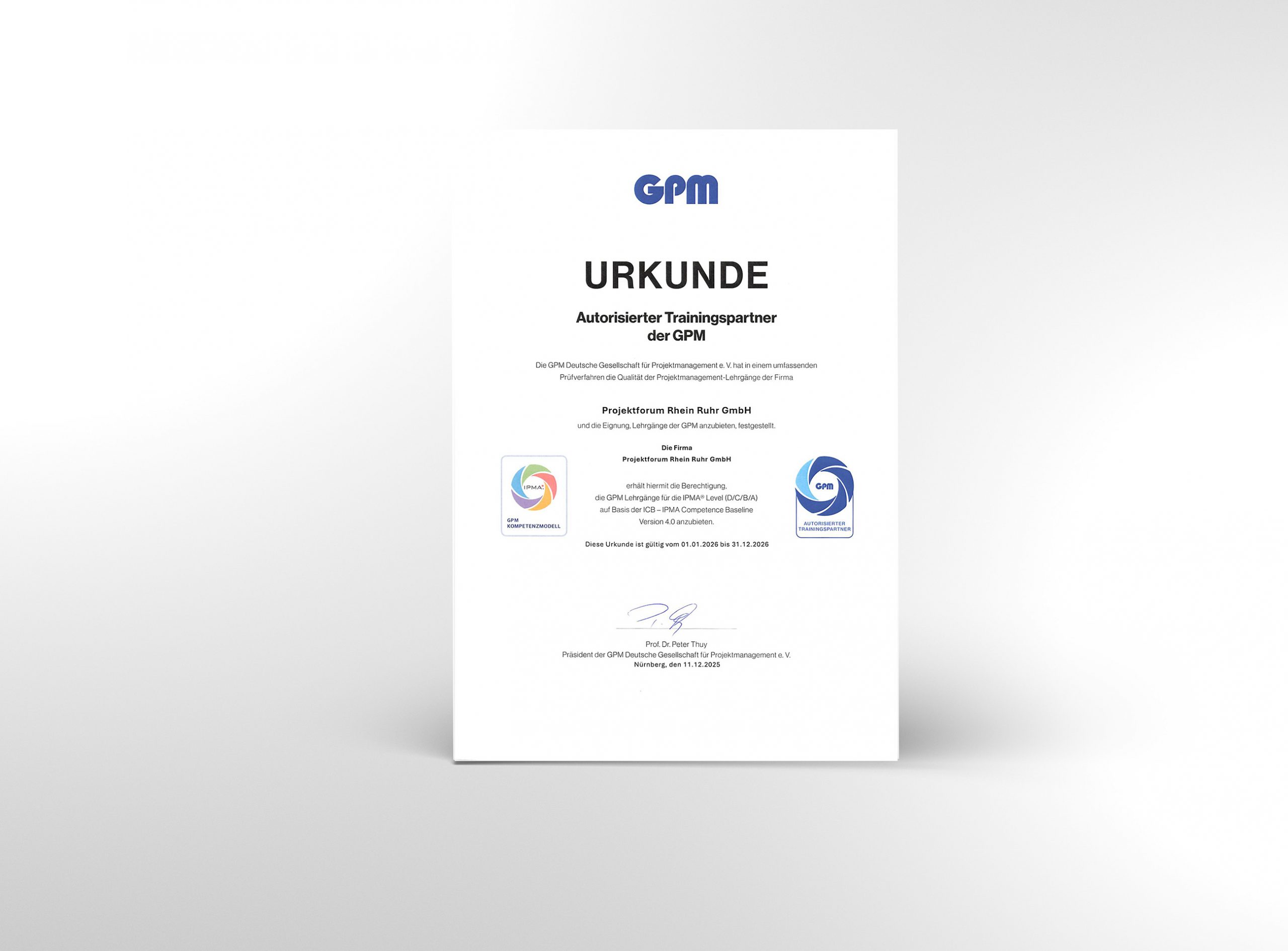 Wir freuen uns, dass die GPM Deutsche Gesellschaft für Projektmanagement e. V. das Projektforum Rhein Ruhr GmbH auch für das Jahr 2026 erneut als autorisierten